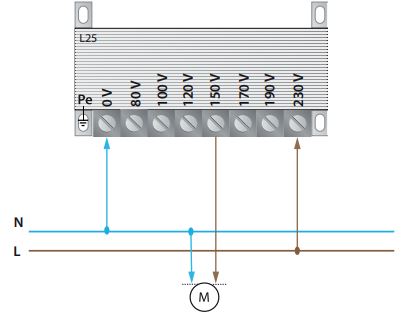 Cet autotransformateur peut être installé dans une armoire électrique. Il peut être connecté via le bornier à vis. Il a une protection IP20 contre la pénétration de poussière.