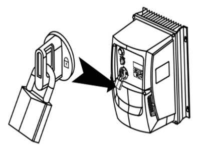 Ce variateur de fréquence dispose d'un potentiomètre pour réguler la vitesse du moteur. La vitesse du moteur peut être réglée en continu. Sous le potentiomètre, il y a un interrupteur à 3 positions pour démarrer et arrêter le moteur. Dans le cas d'un moteur monophasé, le moteur tournera toujours dans le même sens. Via l'interrupteur-sectionneur, le secteur (tension d'alimentation) peut être déconnecté. Cet interrupteur-sectionneur dispose d'une position d'arrêt cadenassable pour garantir que le variateur de fréquence reste déconnecté de la tension d'alimentation lors d'une maintenance par exemple.