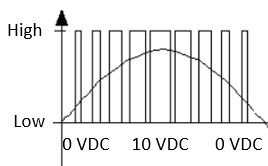 Въпреки че сигналът просто се превключва ВКЛЮЧЕНО/ИЗКЛЮЧЕНО, устройството „усреднява“ сигнала във времето и променя своята скорост или позиция въз основа на това колко дълго е бил ВКЛЮЧЕН.