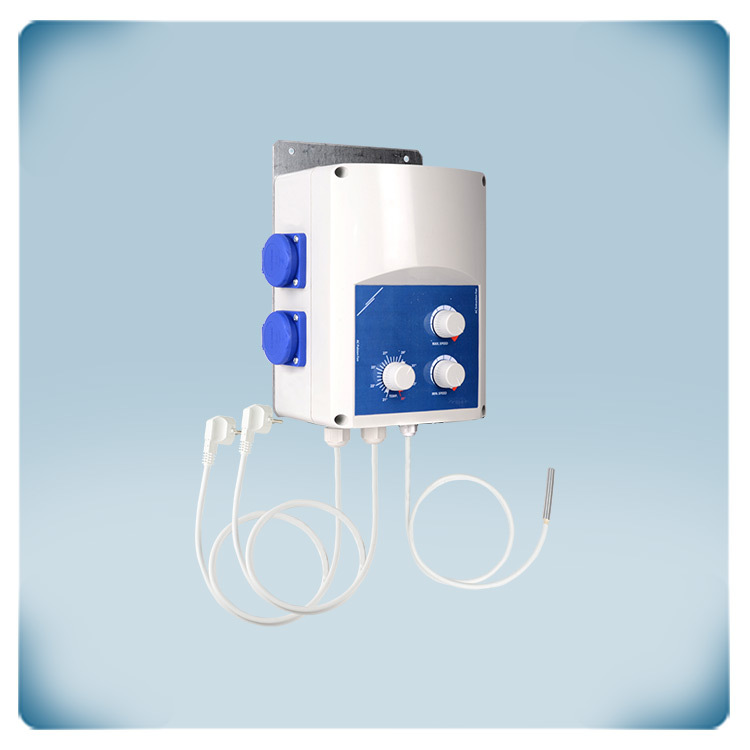 Předzapojený regulátor otáček ventilátoru a regulátor elektrického ohřevu. Kombinovaný maximální proud motoru je 6 A. Může ovládat elektrická topná tělesa až do 16 A (3,5 kW). AC ventilátory se aktivují, když okolní teplota stoupne nad nastavenou teplotu. Se zvyšující se teplotou se zvyšují otáčky ventilátoru. Elektrický ohřívač se aktivuje, když okolní teplota klesne pod nastavenou teplotu. Požadovanou teplotu lze nastavit v rozmezí 21-35 °C. Vysokou a nízkou úroveň otáček ventilátoru lze nastavit pomocí dvou potenciometrů. Okolní teplota se měří pomocí integrované teplotní sondy. Elektrický ohřívač, přívodní a odvodní ventilátor lze připojit prostřednictvím tří zásuvek Schuko Euro. Napájecí napětí je 230 V AC. Otáčky ventilátoru se regulují snížením napětí motoru pomocí regulace fázového úhlu - technologie TRIAC.