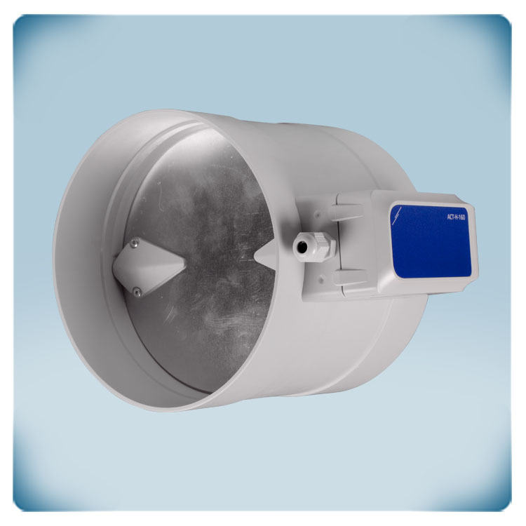 A circular motorized damper to regulate air flow in duct systems. Easy to install. Possible to control fresh air supply for each room separately.