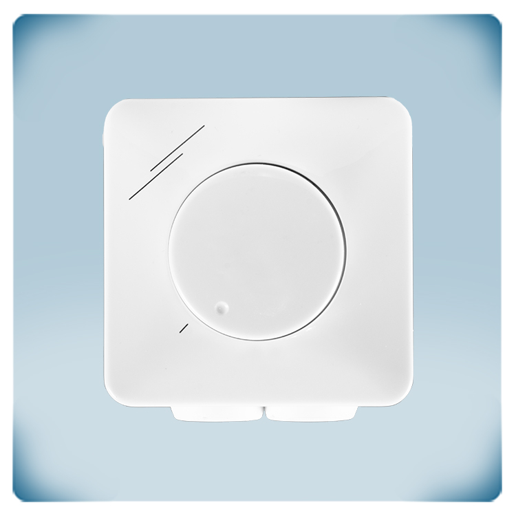 Potenciometr s polohou OFF pro ruční ovládání EC ventilátorů, AC regulátorů otáček ventilátorů nebo klapek se servopohony. Vyžaduje napájecí napětí 230 V AC a poskytuje plynulý proměnný výstupní signál, který lze nastavit otočným knoflíkem. Pomocí přepínače lze zvolit následující typy výstupů: 1-10 VDC / 2-20 mA / 10-100 % PWM. V poloze OFF je výstup 0 VDC / 0 mA / 0 % PWM. Výstupní rozsah je nastavitelný pomocí dvou interních trimrů v rozsahu Vmin (10-70 %) a Vmax (30-100 %). Kryt odolný proti stříkající vodě je vhodný pro vestavnou (IP44) i povrchovou (IP54) montáž.