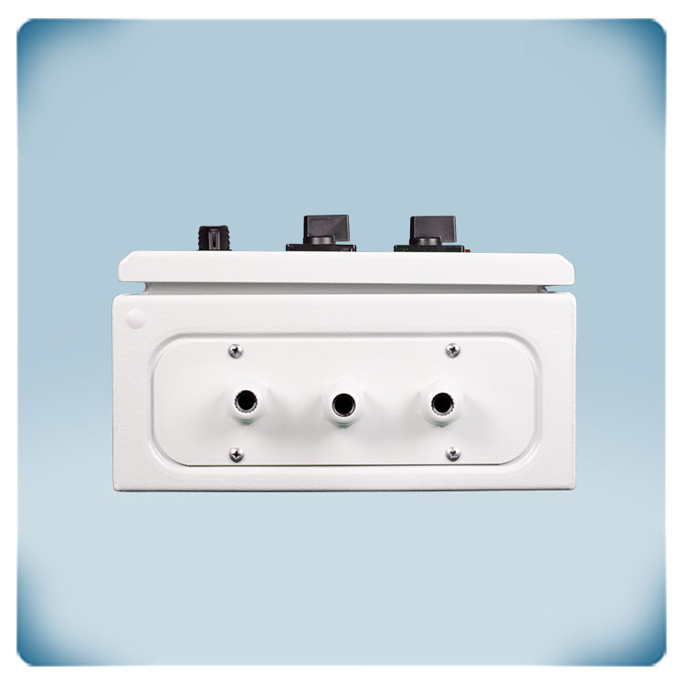 Dvourychlostní regulátor pro jednofázové motory s tepelnými kontakty (TK). Maximální (kombinovaný) proud motoru je 10 A. Tento regulátor má dva samostatné pětistupňové přepínače pro volbu dvou optimálních rychlostí ventilátoru. Když je motor zapnutý, je možné přepínat mezi oběma rychlostmi pomocí vstupu s beznapěťovým kontaktem. Funkce monitorování TK vypne motor v případě přehřátí. Po výpadku napájení se motor automaticky znovu spustí. Alarmový výstup a neregulovaný výstup mohou ovládat externí zařízení pro generování výstrah nebo potvrzení normálního provozu. Kryt lze použít pro povrchovou montáž a poskytuje krytí IP54 proti vniknutí nečistot, prachu a vlhkosti. Otáčky ventilátoru jsou regulovány snížením napětí motoru pomocí autotransformátorů. Tato technologie generuje výstupní napětí s dokonalým sinusovým tvarem, což zaručuje tichý provoz motoru.
