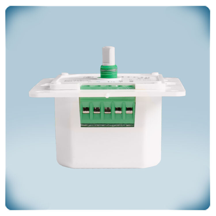Dieses Potentiometer kann auf die Wand montiert oder eingebaut werden. Die Befestigungslöcher passen perfekt auf standardisierte europäische Unterputzdosen. Das Gehäuse besteht aus hochwertigem ASA-Kunststoff in einer angenehmen Cremefarbe. Das Material ist UV-beständig und stoßfest. Die Schutzart beträgt IP44 bei Unterputzmontage und IP54 bei Aufputzmontage. Sie schützt die Elektronik bei Innenanwendungen gegen das Eindringen von Staub, Schmutz und Wasser. Das Gehäuse lässt sich leicht mit einem feuchten Tuch reinigen und ist einfach zu montieren – es sind nur einige einfache Werkzeuge erforderlich.