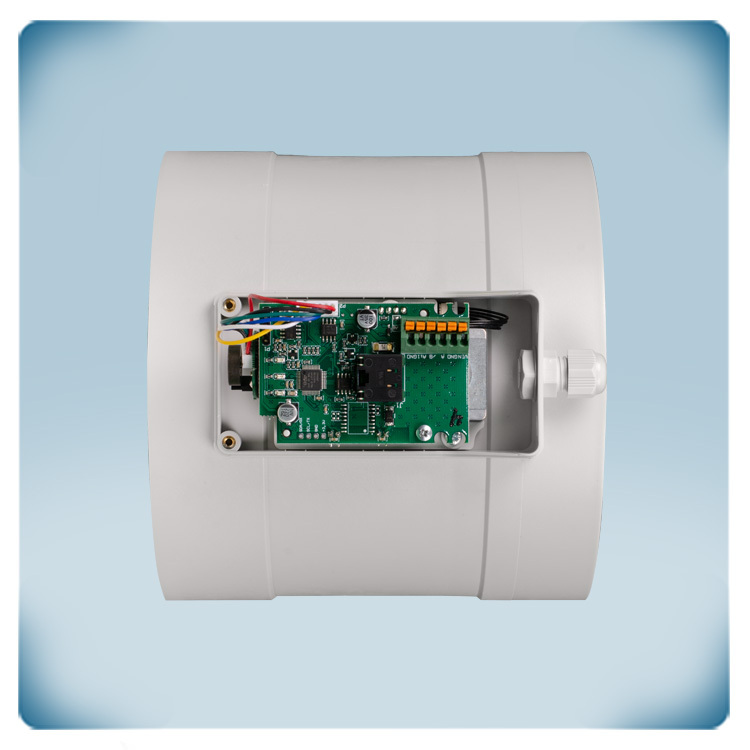 Über diesen runden variablen Volumenstromregler kann ein Sentera Sensor angeschlossen werden. Die motorisierte Klappe wird dann basierend auf den Sensormessungen geregelt werden. Alle Parameter können über Modbus eingestellt werden.