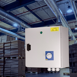 Dieser Transformatorregler steuert dreiphasige 400V Motoren, die mit Thermokontakten oder Thermoschutz ausgestattet sind. Es können Ventilatoren mit einem kombinierten maximalen Motorstrom von 2,5 A angeschlossen werden. Die TK-Überwachungsfunktion schaltet den Motor im Falle einer Überhitzung ab. Über den Drehschalter auf der Vorderseite kann die Drehzahl in 5 Stufen eingestellt werden. Ausserdem verfügt dieser 5-stufige Drehschalter auch über eine AUS Stellung. Die Motordrehzahl wird in 5 Stufen durch Änderung der Motorspannung geregelt. Die Ausgangsspannung hat einen perfekten Sinusform und garantiert einen ruhigen Motorbetrieb. Das Gehäuse hat einen IP54 Schutz und kann in Innenräumen an der Wand montiert werden. Die Versorgungsspannung beträgt 3x400 VAC.