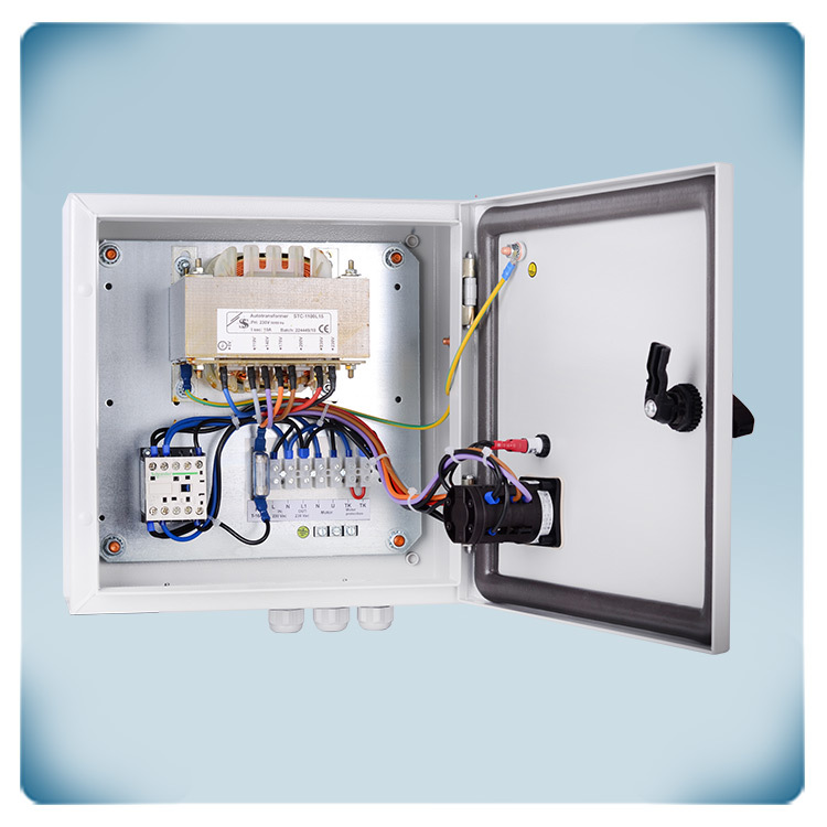 Dieser einphasige 5-Stufen-Trafo mit Motorschutz sorgt dafür, dass Ihr Motor bei Überhitzung abgeschaltet wird. Die TK Kontakten beider Geräten sollen mit einander verbunden werden. Die Drehzahl des Lüfters kann über den 5-Stufen-Schalter eingestellt werden. Der (kombinierte) maximale Motorstrom beträgt 10 A. Das Gerät hat Schutzgrad IP54 uns ist für Aufputzmontage in Innenräumen geeignet. Die Drehzahl wird in 5 Stufen durch Reduzierung der Motorspannung geregelt. Die Ausgangsspannung mit perfekter Sinusform, garantiert einen leisen Motorbetrieb.
