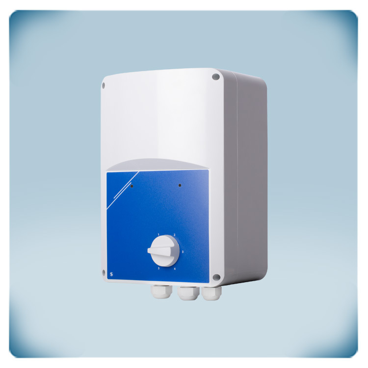 The fan speed can be set via the rotary switch with 5 positions and OFF position to switch off the motor. This speed controller is only suitable for voltage-controllable motors. This is because the autotransformer technology reduces the motor voltage and the fan speed in 5 steps. If you are not sure whether your motor is voltage controllable, it is best to contact the motor manufacturer. Autotransformer technology is very reliable and robust. It generates a motor voltage with a perfect sinusoidal shape. This results in exceptionally quiet motor operation and extended service life. A special impregnated coating reduces the electrical noise from the autotransformers.