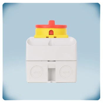 La carcasa de plástico de alta calidad puede montarse en la pared. Ofrece protección IP65 contra la entrada de suciedad y agua. Las cuatro perforaciones M20 o M25 facilitan el cableado. El interruptor rojo sobre amarillo es claramente visible, lo que es importante para un interruptor de parada de emergencia.