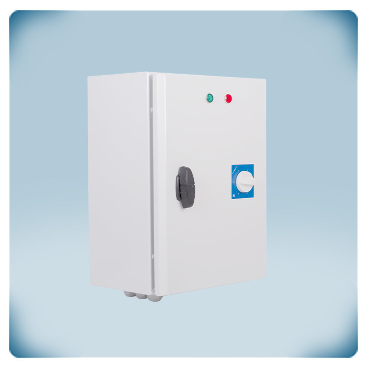 Este controlador tiene entrada digital, salida de alarma y salida no regulada. El regulador posibilita el control gradual de ventiladores con motores trifásicos 400 VAC, cuyo amperaje máximo no supera 4 A. El regulador tiene un botón giratorio con 5 escalones, que también tiene posición de apagado - OFF. La monitorización TK desactiva el motor en caso de sobrecalentamiento. La entrada digital se puede usar para un control stop - start remoto. Este controlador se reinicia automáticamente después de corte del suministro eléctrico. La tensión de salida tiene una forma sinusoidal perfecta, garantizando de este modo el funcionamiento silencioso del motor. La caja del dispositivo es de metal y tiene un alto grado de protección (IP54). Tomas de tensión: 0-130-180-230-300-400 VAC.