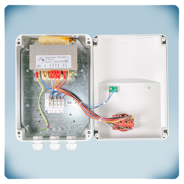 Este regulador por transformador ofrece un control gradual (en escalones) de ventiladores con motores de AC, monofásicos 230 V. La corriente máxima (combinada) es de 7,5 amperios.