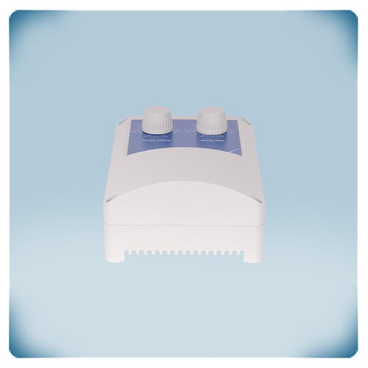 Outre les deux potentiomètres intégrés jour et nuit pour la sélection du point de consigne jour et nuit, le AH2C1 dispose également d'une option pour connecter une minuterie externe ou une horloge pour basculer entre les potentiomètres jour et nuit (désactivation de l'un et activation de l'autre).