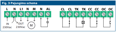 Reguliatorius turi TK gnybtus šiluminei variklio apsaugai pajungti. Gamykliškai reguliatorius ant TK gnybtų turi trumpiklį, čia tuo atveju jei jūsų ventiliatorius neturi šilumonės apsaugos. Nutrūkus elektros tiekimui, variklis bus automatiškai paleistas iš naujo.