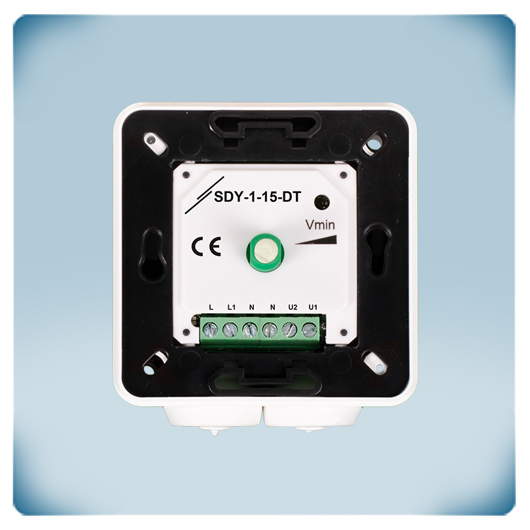 Naujo dizaino SDY elektroninis ventiliatoriaus greičio reguliatorius reguliuoja įtampa valdomų variklių iki 1,5 A sukimosi greitį, keičiant variklio maitinomo įtampą.