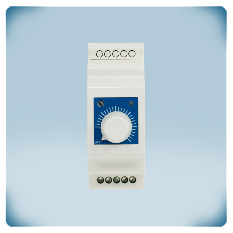 Kaip valdyti ventiliatorių su vienfaziu AC varikliu? Šis ant DIN bėgelio montuojamas greičio reguliatorius yra sukurtas AC ventiliatoriams valdyti greitį per integruotą potenciometro rankenėlę. Išjungtoje padėtyje variklis išjungtas. Pasukus potenciometrą pagal laikrodžio rodyklę padidės varikliui paduodama įtampa, dėl ko padidės ventiliatoriaus greitis