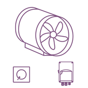 Lokale snelheidsregeling ventilator, spanningsregelbare AC motor: 230 VAC, 50-60 Hz, Imax 2,5 A.
