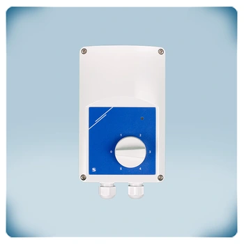 Dit is een snelheidsregelaar voor eenfasige ventilatoren. Via de ingebouwde draaiknop kan één van de 5 snelheden gekozen worden. Er wordt gebruikgemaakt van autotransformatortechnologie om de motorspanning – en dus de ventilatorsnelheid – in 5 stappen te verlagen. Deze technologie is zeer betrouwbaar en robuust. Ze genereert een motorspanning met een perfecte sinusvorm, wat zorgt voor een uitzonderlijk stille motorwerking en een langere levensduur. Een speciale geïmpregneerde coating vermindert elektrische ruis van de autotransformatoren.
