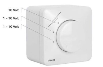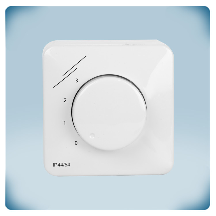In sommige gevallen wenst u geen traploze regeling. Met deze potentiometer beschikt u over 3 standen, waarvan u er 2 via interne trimmers naar wens kan instellen. Met het uitgangssignaal kan u rechtstreeks EC motoren of klepaandrijvingen op de juiste snelheid of in de juiste stand te brengen. Ook snelheidsregelaars voor AC-ventilatoren kan u met dit toestel aansturen.