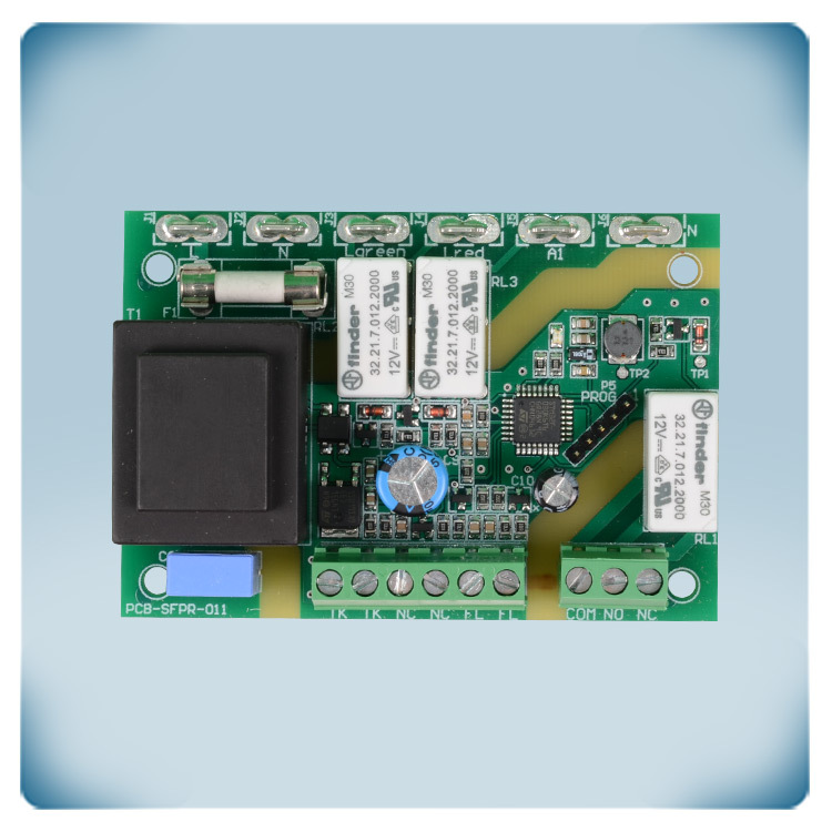 Deze elektronische printplaat stuurt de transformator ventilator snelheidsregelaars van de Sentera SFPR-serie. Via een externe contact kan tussen twee optimale motor snelheden worden geschakeld (hoge/lage snelheid).