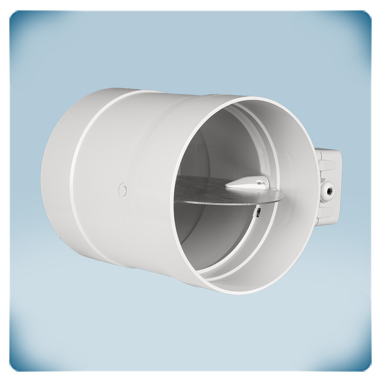 Deze ronde klep kan gebruikt worden in combinatie met standaard ronde kanalen met een diameter van 125 mm. De kanalen passen in de klep, doch om de luchtdichtheid van het systeem te garanderen, moet de overgang tussen kanaal en klep worden afgedicht met aluminiumtape. Doordat de kanalen in de klep schuiven wordt geen extra luchtweerstand veroorzaakt. Dit zorgt uiteraard voor een optimale efficiëntie.