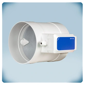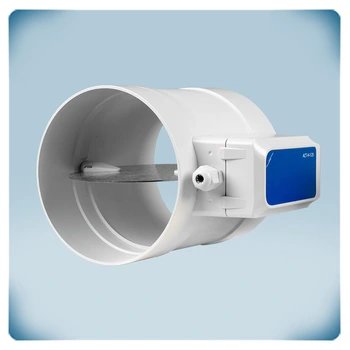 Ronde gemotoriseerde regelklep voor luchtkanalen met een diameter van 125 mm. De klepbladpositie kan worden ingesteld via een 0-10 V-signaal of via Modbus RTU-communicatie. De minimale en maximale positie en tal van andere parameters kunnen eveneens worden aangepast in de Modbusregisters . Het klepblad biedt een klasse D luchtdichtheid (EN1751). Het kan luchtstromen regelen met een snelheid tussen 0 en 10 m/s. De voedingsspanning is 24 VDC, via Power over Modbus (PoM).