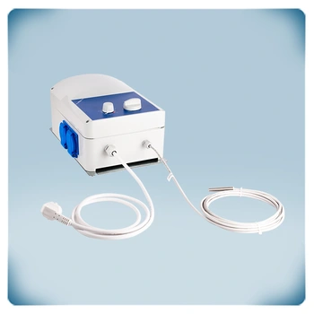 De omgevingstemperatuur wordt gemeten via de passieve temperatuursonde (PT500). Deze temperatuursonde is al aangesloten en heeft een kabellengte van 4 m. De insteltemperatuur kan worden aangepast via de potentiometer op het frontpaneel.