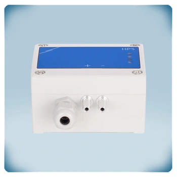 Cztery diody LED wyraźnie wskazują stan czujnika różnicy ciśnień i mierzone wartości. Ten czujnik jest wyposażony w pełni cyfrowy czujnik ciśnienia o wysokiej rozdzielczości. Można go użyć do monitorowania różnicy ciśnień przez filtr powietrza w celu ostrzeżenia, czy filtr jest brudny. Czujnik różnicy ciśnień może monitorować przepływ powietrza, aby zapewnić dopływ świeżego powietrza.