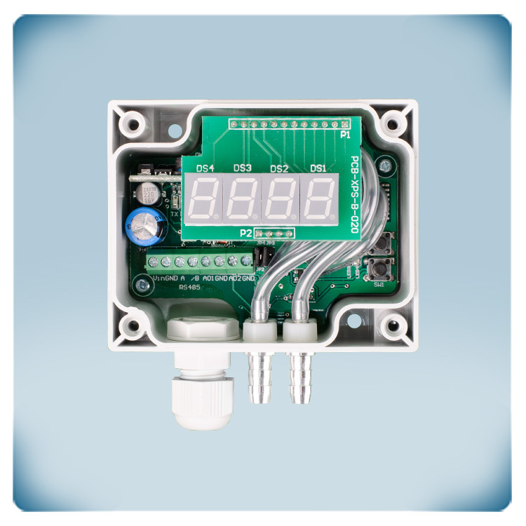 Jest wyposażony w pełni cyfrowy czujnik ciśnienia o wysokiej rozdzielczości. Różnicę ciśnienia i wszystkie inne parametry można ustawić za pomocą połączenia Modbus RTU. Ten czujnik wymaga napięcia zasilania 18–34 VDC / 15–24 VAC ± 10%. Może być stosowany do pomiary ciśnienia od 0 do 1000 Pa.