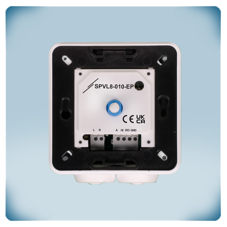 Obudowy odgrywają ważną rolę w ochronie urządzeń, dlatego też, aby zagwarantować ich jakość, produkujemy je we własnej fabryce. Dzięki specjalnej konstrukcji obudowy regulator prędkości wentylatora może być montowany na ścianie lub w zabudowie, co oznacza, że nadaje się do stosowania na wszystkich rodzajach ścian – od paneli drewnianych, przez cegłę pełną, aż po płyty gipsowo-kartonowe. Jeśli używasz europejskiej puszki ściennej, otwory montażowe SPVL8-010-EP pasują idealnie. Obudowa wykonana jest z wysokiej jakości tworzywa ASA – materiału odpornego na promienie UV i chroniącego przed uderzeniami. Stopień ochrony wynosi IP44 w przypadku montażu podtynkowego i IP54 w przypadku montażu natynkowego. Elektronika jest dobrze zabezpieczona przed wnikaniem kurzu, brudu i wody pod dowolnym kątem w zastosowaniach wewnętrznych. Co więcej, z łatwością wyczyścisz go wilgotnym ręcznikiem.
