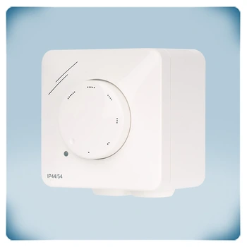 Prędkość wentylatora można ustawić za pomocą potencjometru. Ten potencjometr ma pozycję OFF (przeciwnie do ruchu wskazówek zegara). Minimalną prędkość można regulować za pomocą wewnętrznego trymera. Obudowa umożliwia montaż podtynkowy (IP44) lub natynkowy (IP54).