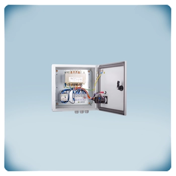 5-stopniowy transformatorowy regulator obrotów wentylatora do silników jednofazowych, wyposażony w styki termiczne lub TK. Maksymalny (łączny) prąd silnika wynosi 20 A.