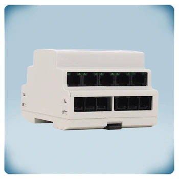 Ta skrzynka rozdzielcza Mobus RTU oferuje dziesięć gniazd RJ45. Te gniazda RJ45 są połączone wewnętrznie (połączenie równoległe). Za pomocą gniazd RJ45 można łączyć ze sobą urządzenia Sentera zasilane napięciem 24 VDC - połączenie PoM. Dzięki połączeniu Sentera PoM zarówno komunikacja Modbus RTU, jak i zasilanie 24 VDC są dystrybuowane za pomocą jednego kabla UTP ze złączem RJ45. Ta skrzynka rozdzielcza upraszcza okablowanie i podłączanie urządzeń Sentera. Wystarczy podłączyć go za pomocą złącza RJ45!