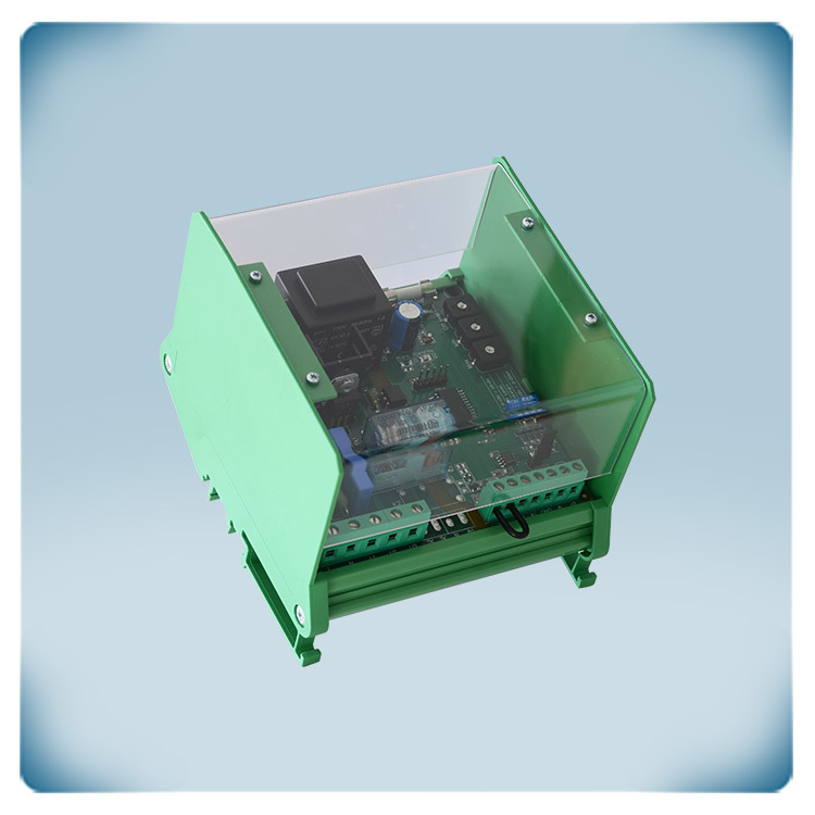 Bu elektronik fan hız kontrolcüsü, maksimum 3 A akıma sahip 230 V tek fazlı motorlar için hassas fan hızı düzenlemesi sağlar. Cihaz, ters çevrilebilir analog giriş sinyaline sahiptir ve 0-10 / 10-0 VDC veya 0-20 / 20-0 mA sinyallerini kabul eder. Ayrıca, seçilebilir işlevselliğe sahip (normal veya zamanlayıcılı) bir uzaktan kumanda girişi ile zamanlayıcı tabanlı başlatmalar için normal veya mantıksal işlevselliğe sahip bir analog giriş içerir.