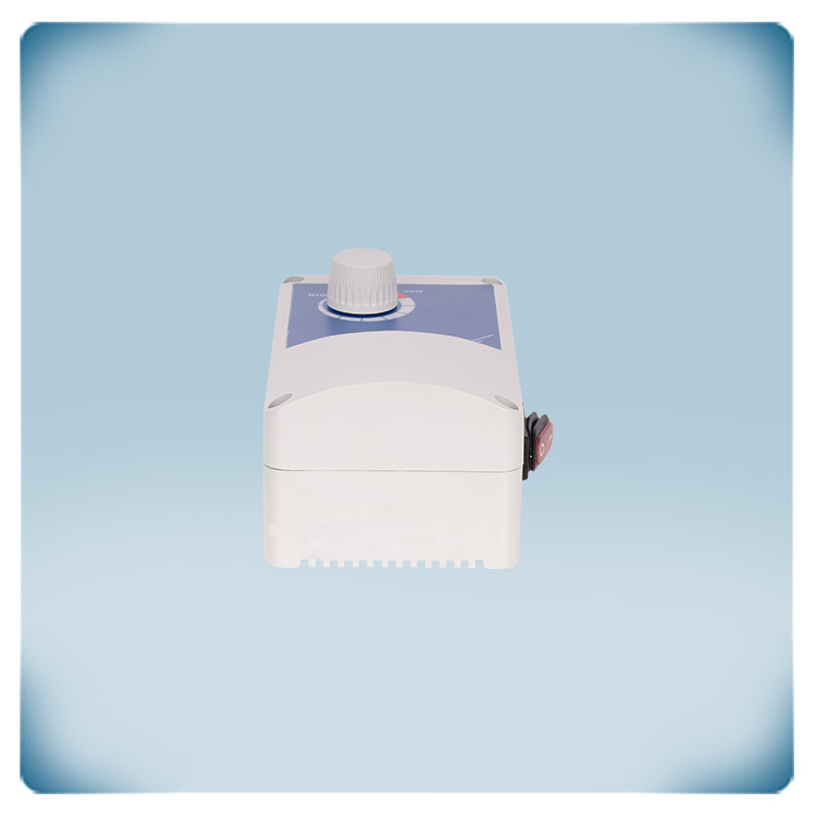 Kontrol cihazı, 110-240 VAC / 50-60 Hz arasındaki güç kaynağını otomatik olarak algılar. Minimum hız, dahili bir trimmer ile %30 ile %60 arasında ayarlanabilir.