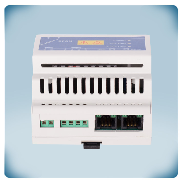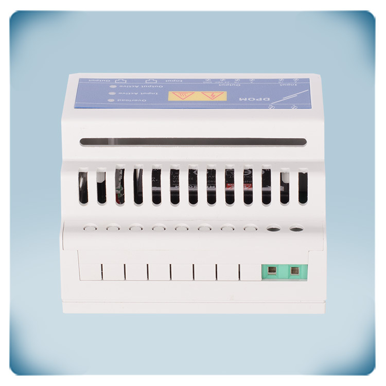 DPOM8-24-20, 24 VDC çıkışlı bir Modbus üzerinden güç kaynağı modülü ve vericisi göstergeli entegre ve tamamen izole edilmiş bir Modbus RTU iletişim hattı tekrarlayıcısıdır.