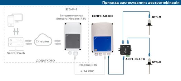 Використовує протокол зв’язку Modbus RTU (RS485) та має вбудоване живлення для датчиків.